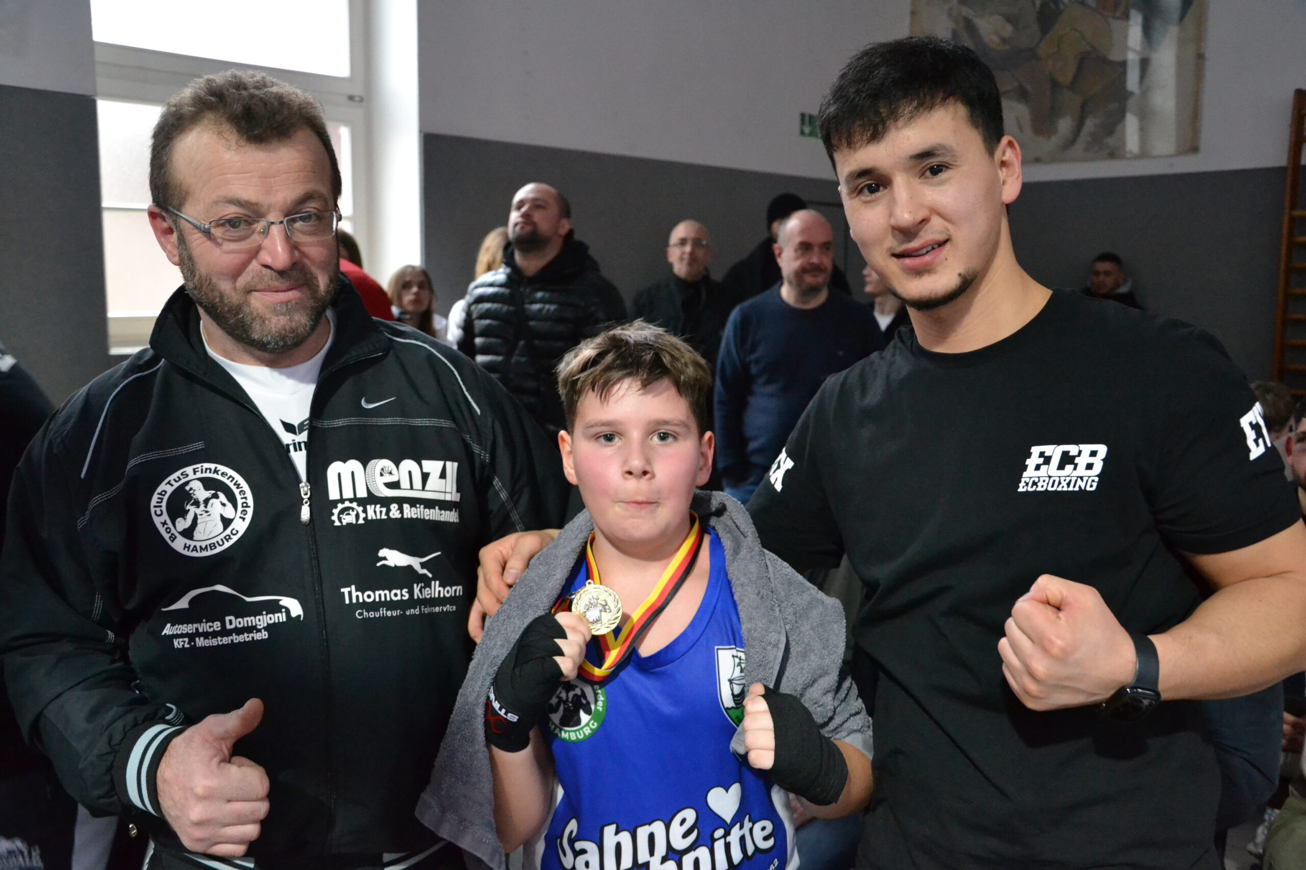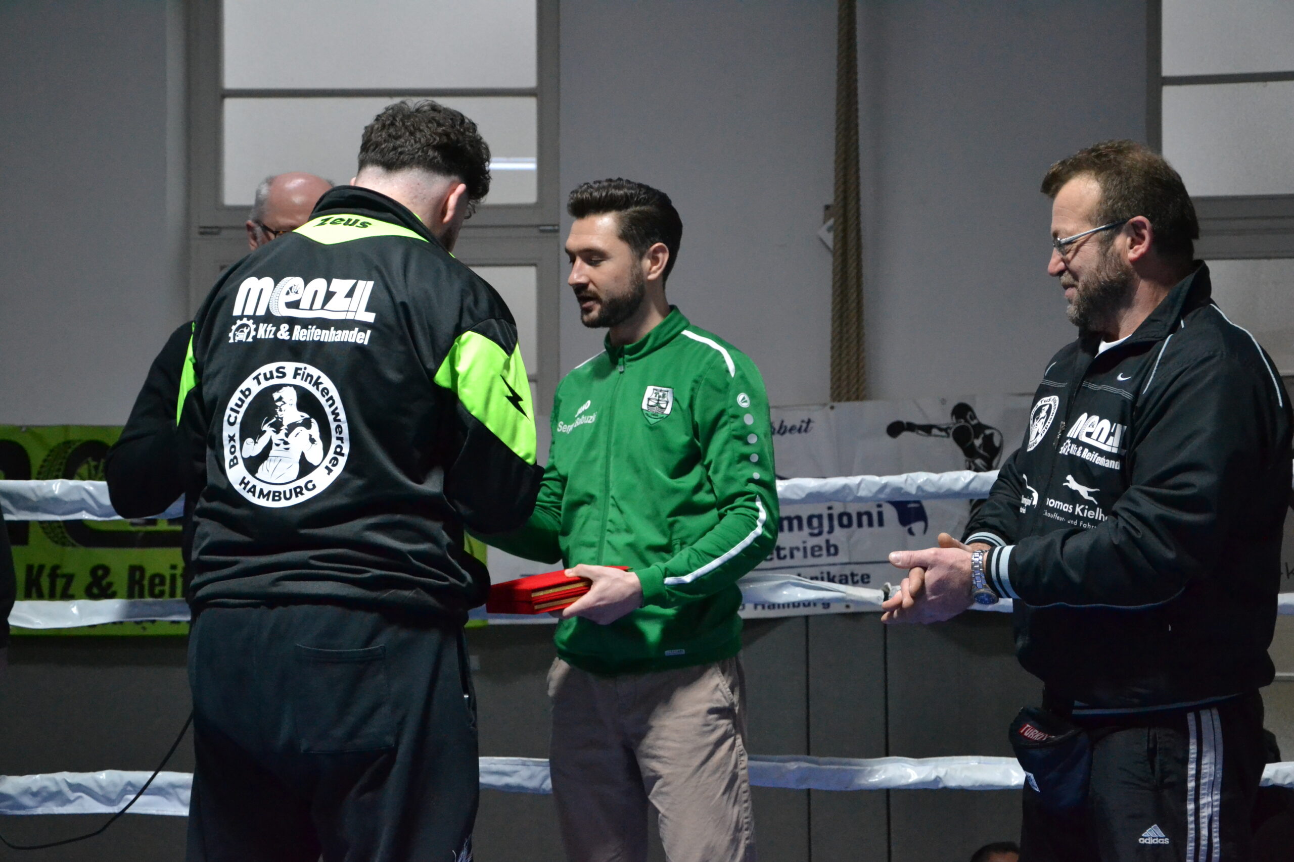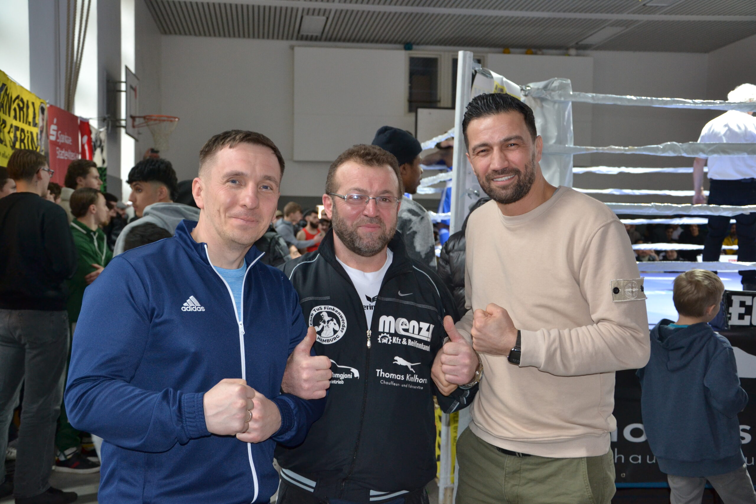 Auch die einstigen Profi-Boxer Mahir „Lion“ Oral und Johannes Schumacher schauten beim Insel Cup zu. Beide kommen ursprünglich vom TuS Finkenwerder, wo die Faszination für den Boxsport entstand. Johannes kann auf mehrere Hamburger und Norddeutscher Meistertitel, den 3. Platz auf der Deutschen Meisterschaft und die Bundesliga zurückblicken. Jetzt ist er Trainer bei Fortuna Rothenburg. Mahir boxte später sogar weltweit um Titel und fuhr zahlreiche Erfolge ein.