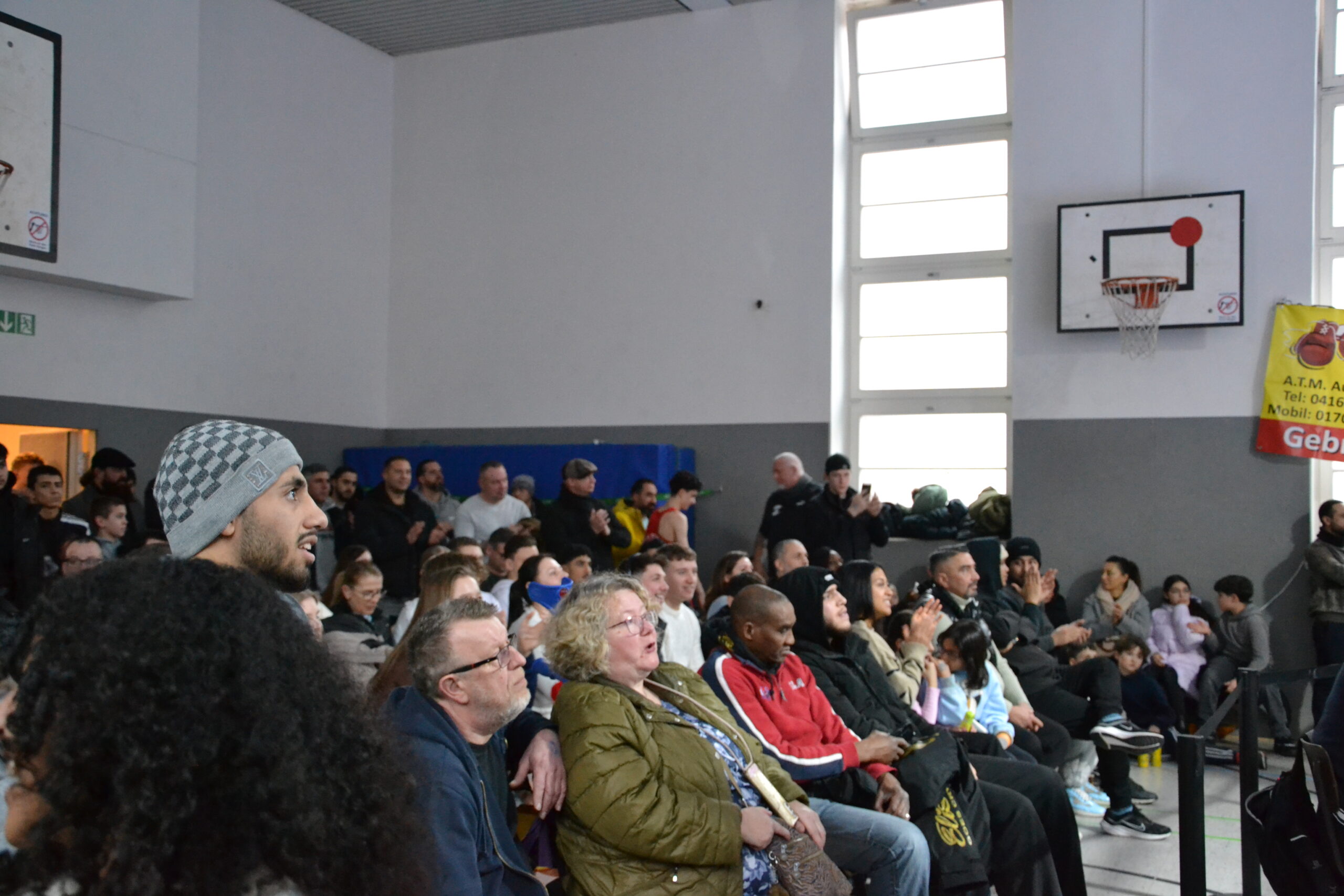 Nachdem die Sitzplätze belegt waren, füllte sich auch der Platz rund um den Ring, bis die Halle schließlich mehr als voll von Zuschauerinnen und Zuschauern war. Der erhöhte Ring machte es zum Glück aus allen Blickwinkeln möglich, das Geschehen zu verfolgen. Anschließend ging es mit den ersten Kämpfen los und das Publikum feuerte die Boxer lautstark an.