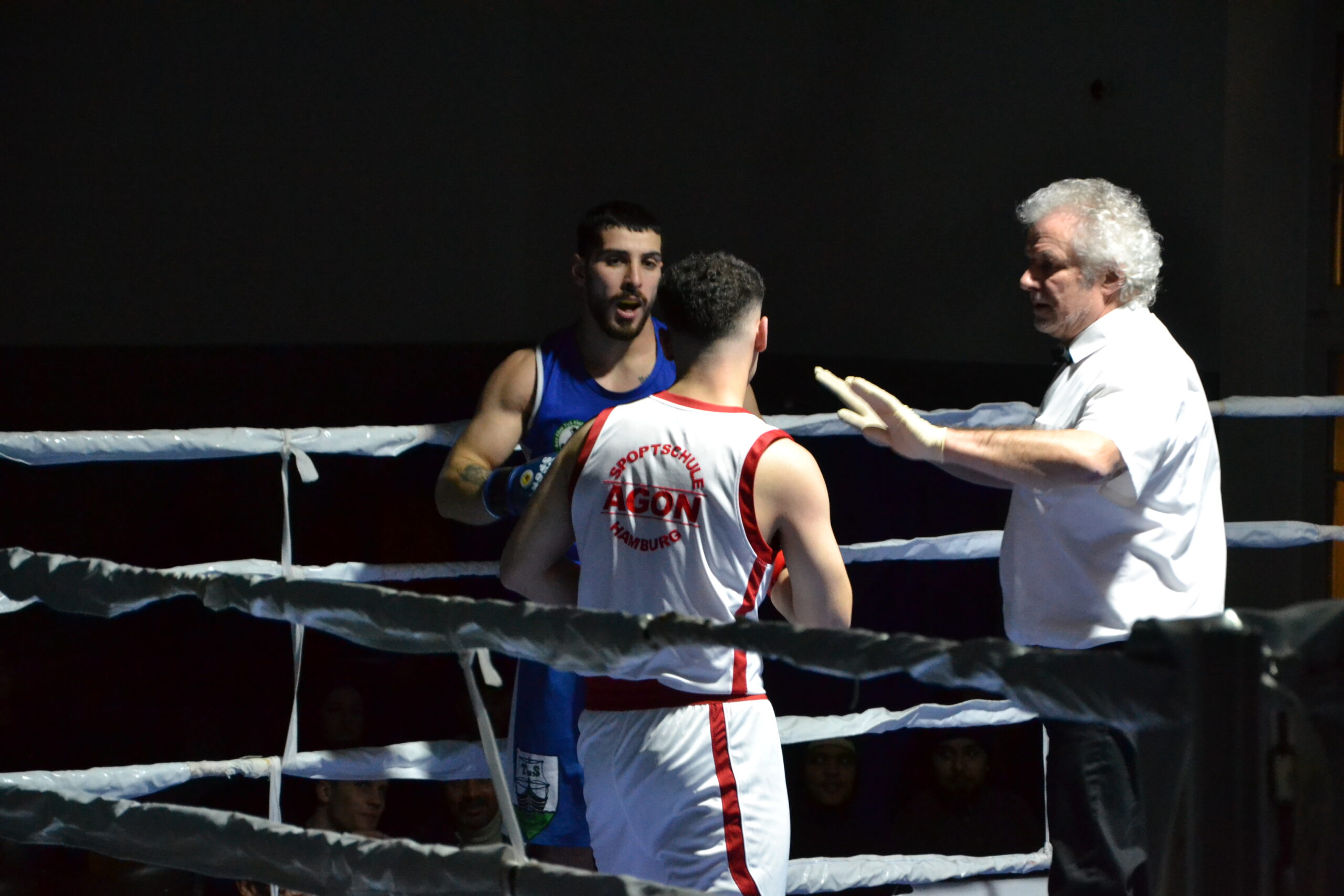 Anschließend zeigte Enes Yandim (Junioren bis 67 kg) sein Können im Kampf gegen einen Boxer aus Strahlsund. Die Kampfrichterin entschied in der zweiten Runde, den Kampf aufgrund eines K.O.’s vorzeitig zu beenden, was die Stimmung im Publikum etwas hoch kochte. Dennoch zeigte sich Enes zufrieden mit seiner Leistung.