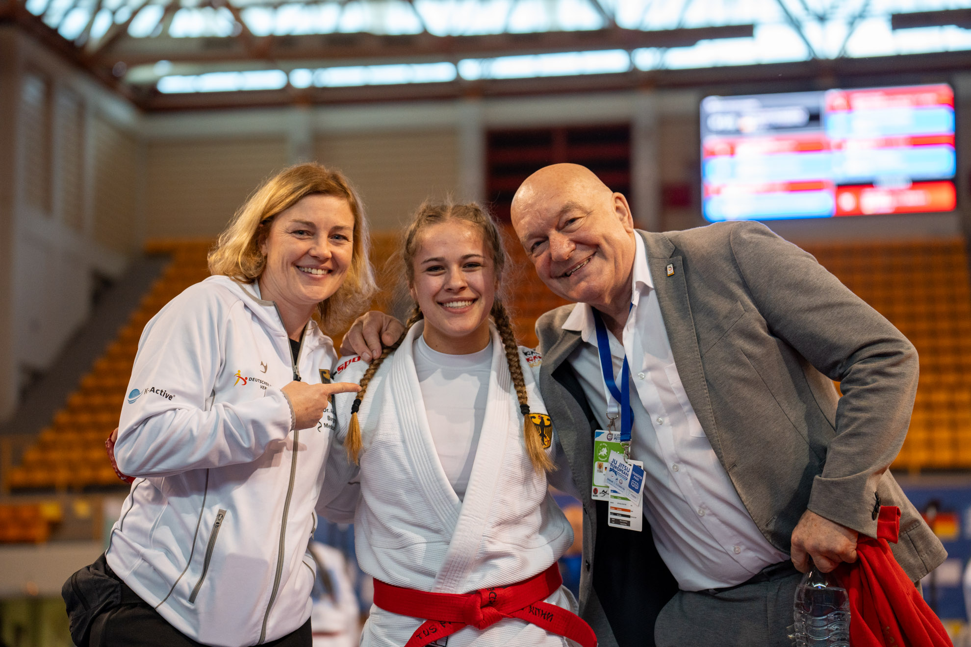 Jette startete hochkonzentriert in das Turnier. Bereits in ihrem ersten Kampf ließ sie ihrer griechischen Kontrahentin keine Chance. Vor heimischem Publikum der Gegnerin bewahrte Jette die Ruhe und dominierte das Geschehen in allen drei Parts. Das Ergebnis: Ein vorzeitiger Sieg durch Full Ippon – ein perfekter Auftakt!