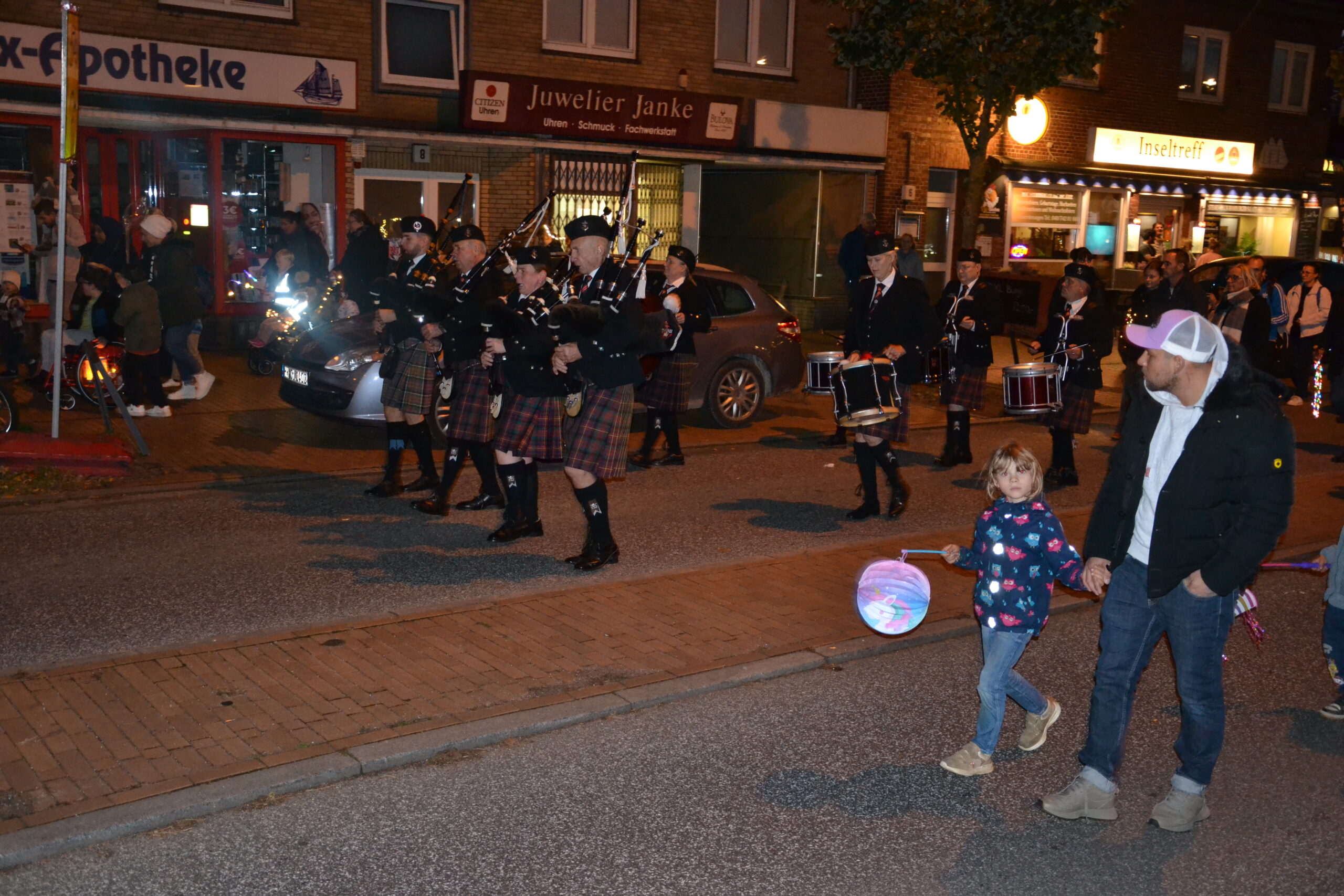 Bei schönem Herbstwetter machten sich um 19 Uhr die Laterneläufer auf den Weg, musikalisch begleitet von dem Spielmannzug des Schützenvereins Elstorf und den „drums and pipes“ des FC St. Pauli.