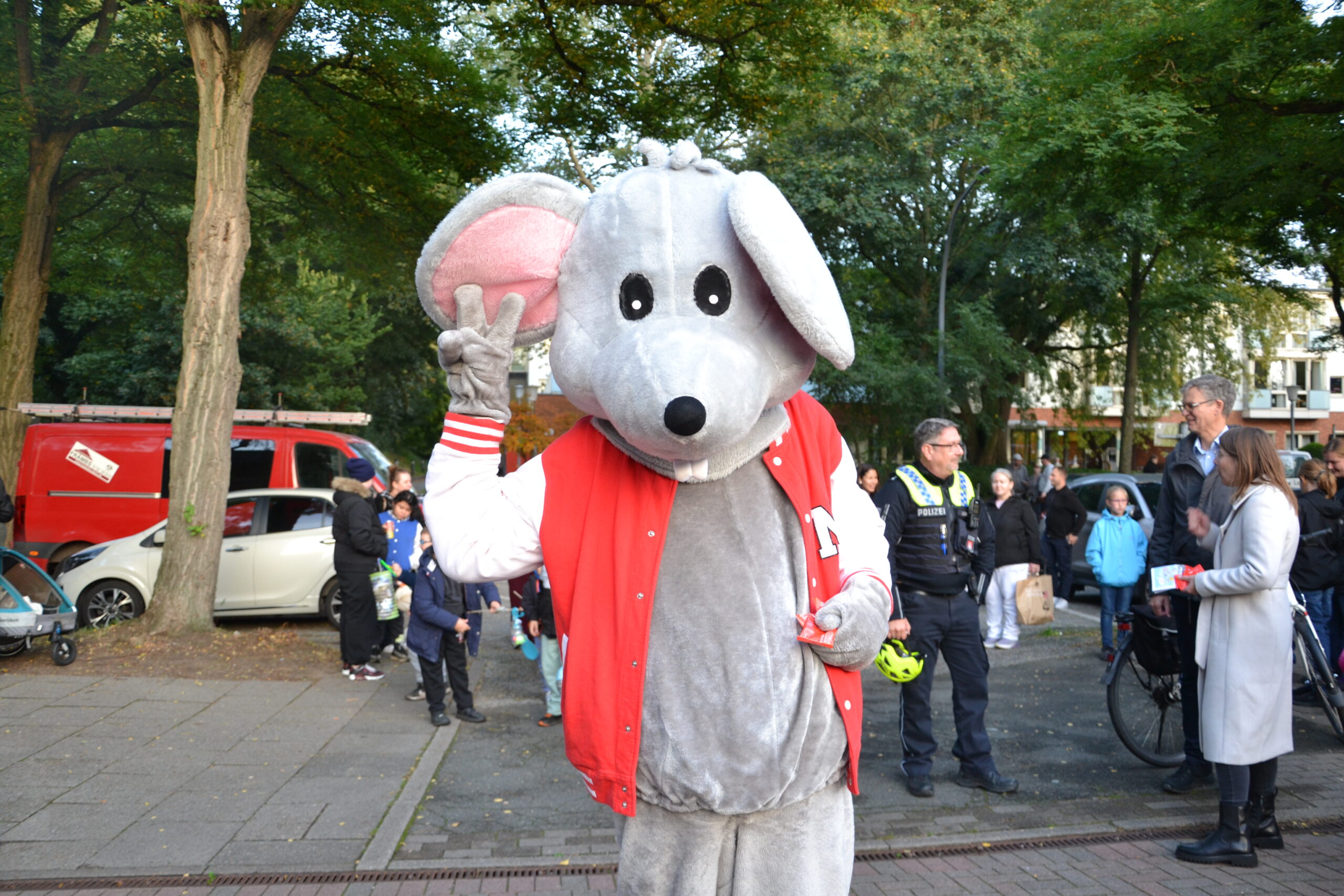 Die Maus Manni von der Hamburger Sparkasse verteilte zur Begrüßung Giveaways an Klein und Groß – vielen Dank dafür.