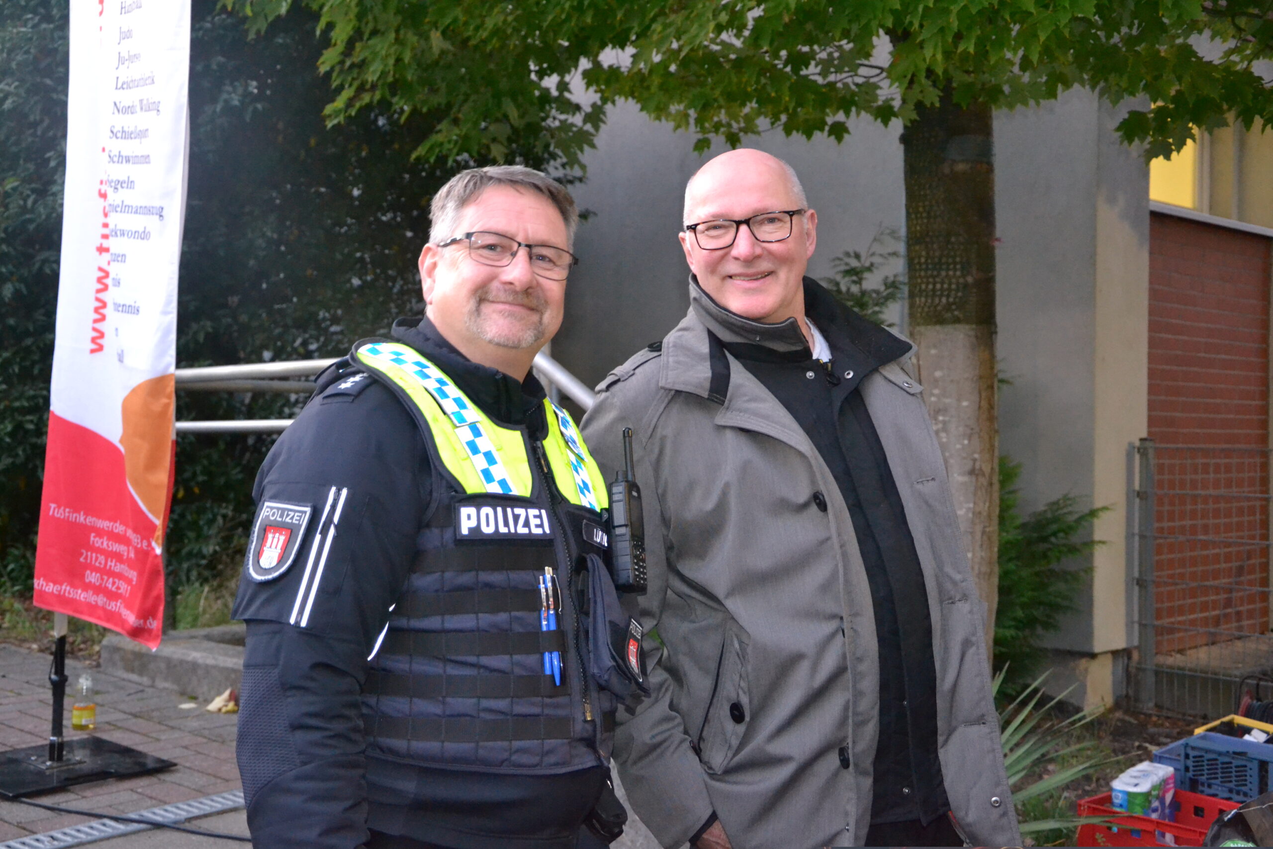Die Verkehrsabsicherung übernahm der örtliche Stadtteilpolizist, unterstützt von der Freiwilligen Feuerwehr Finkenwerder und der Jugendfeuerwehr Neuenfelde.
