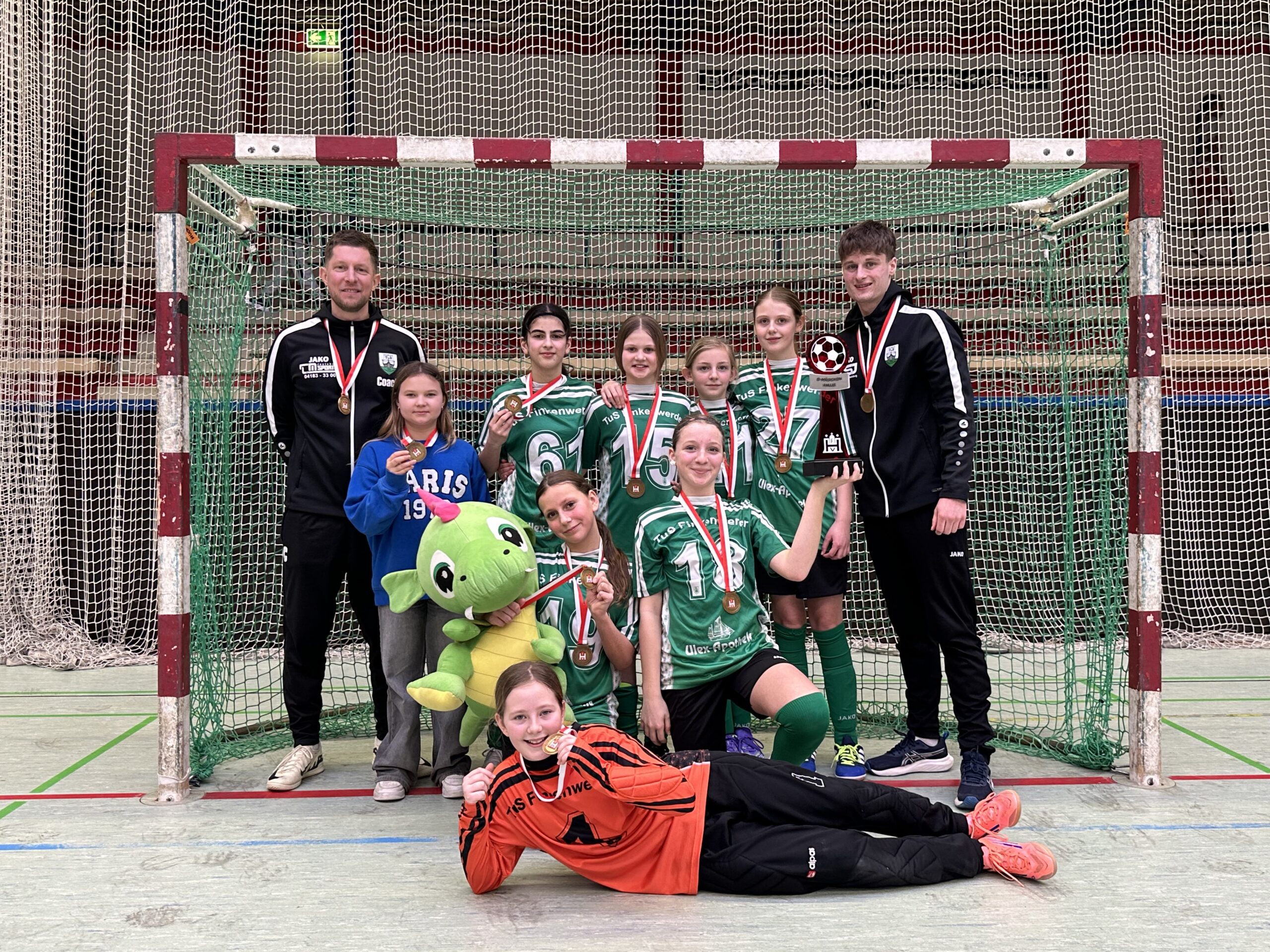 Wir gewannen das letzte Spiel also mit 2:0 und nach Punkten konnten wir nicht mehr eingeholt werden. Dank drei Spielen mit reichlich Toren und keinen Gegentreffern hat uns unser Torverhältnis also am Ende den Pokalsieg der Hamburger Hallenmeisterschaften 2025/2026 eingebracht, was wir im Anschluss gemeinsam bei Ciao Bella gefeiert haben.
